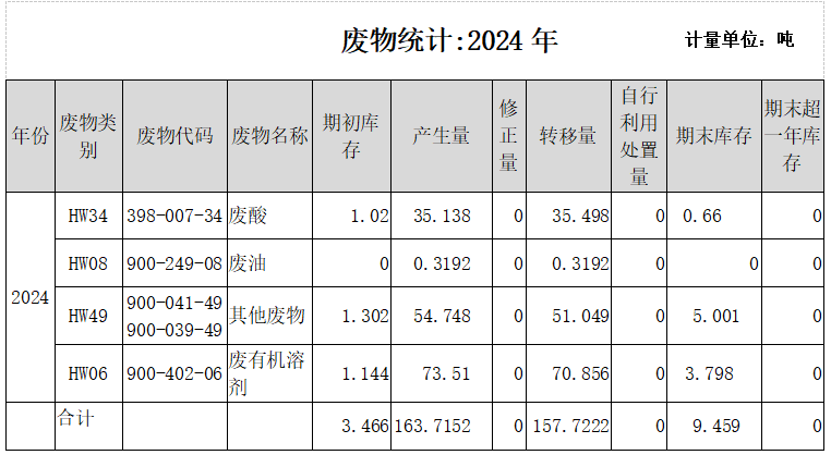 危險廢物接收單位: 福建綠洲固體廢物處置有限公司 福建志坤能源科技開發有限公司 危險廢物轉移運輸單位: 福州省昊辰物流有限公司 危險廢物轉移運輸單位: 福州省昊辰物流有限公司 危險廢物產生及轉移量: